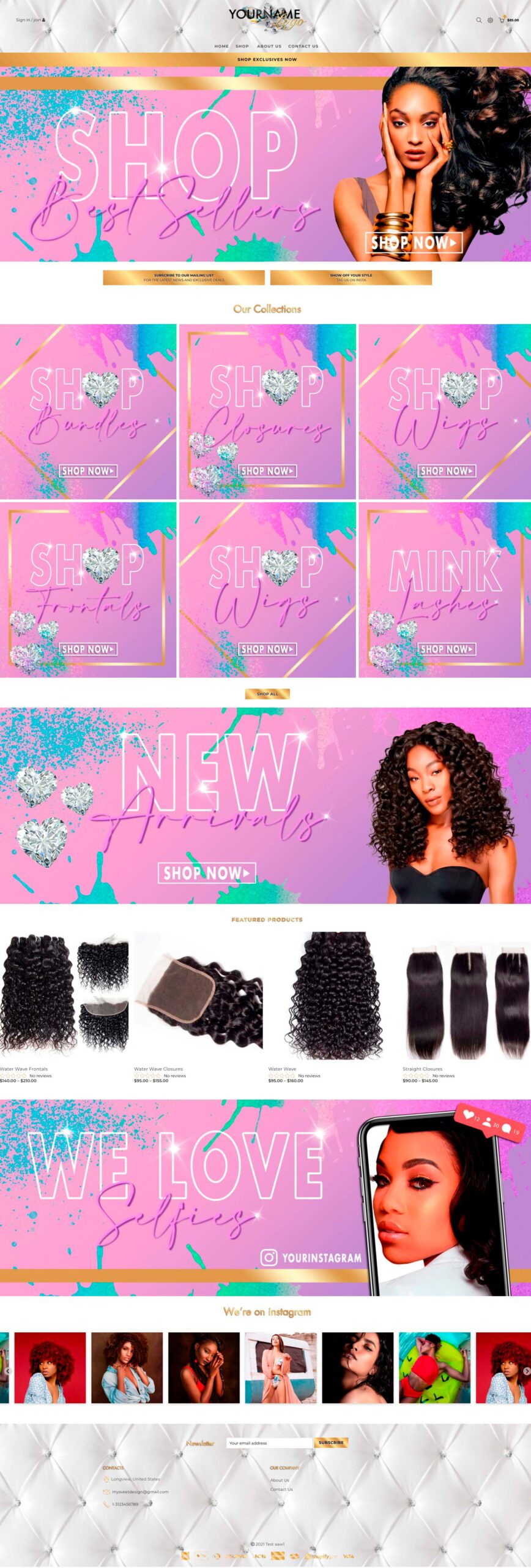 Showcase your brand with our beautiful and colorful diamond and black website template. A vibrant, luxurious choice for hair boutiques.