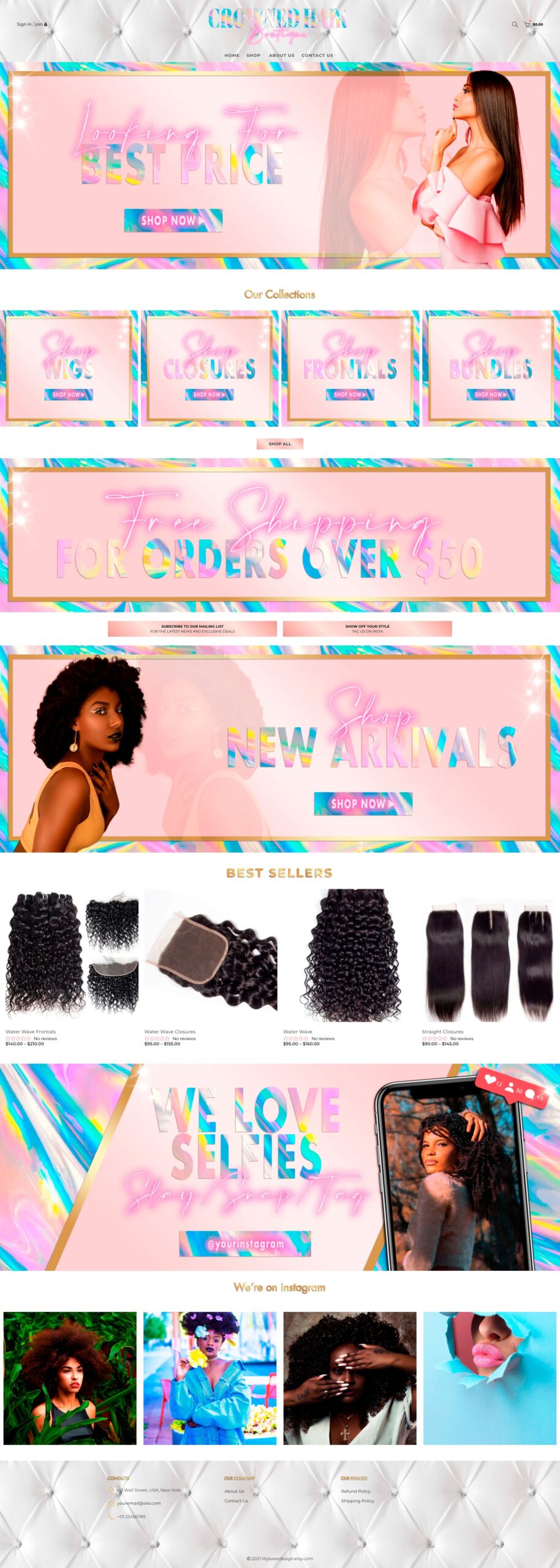Dazzle your customers with our holographic rose gold website template. A trendy and professional design for hair and beauty brands.