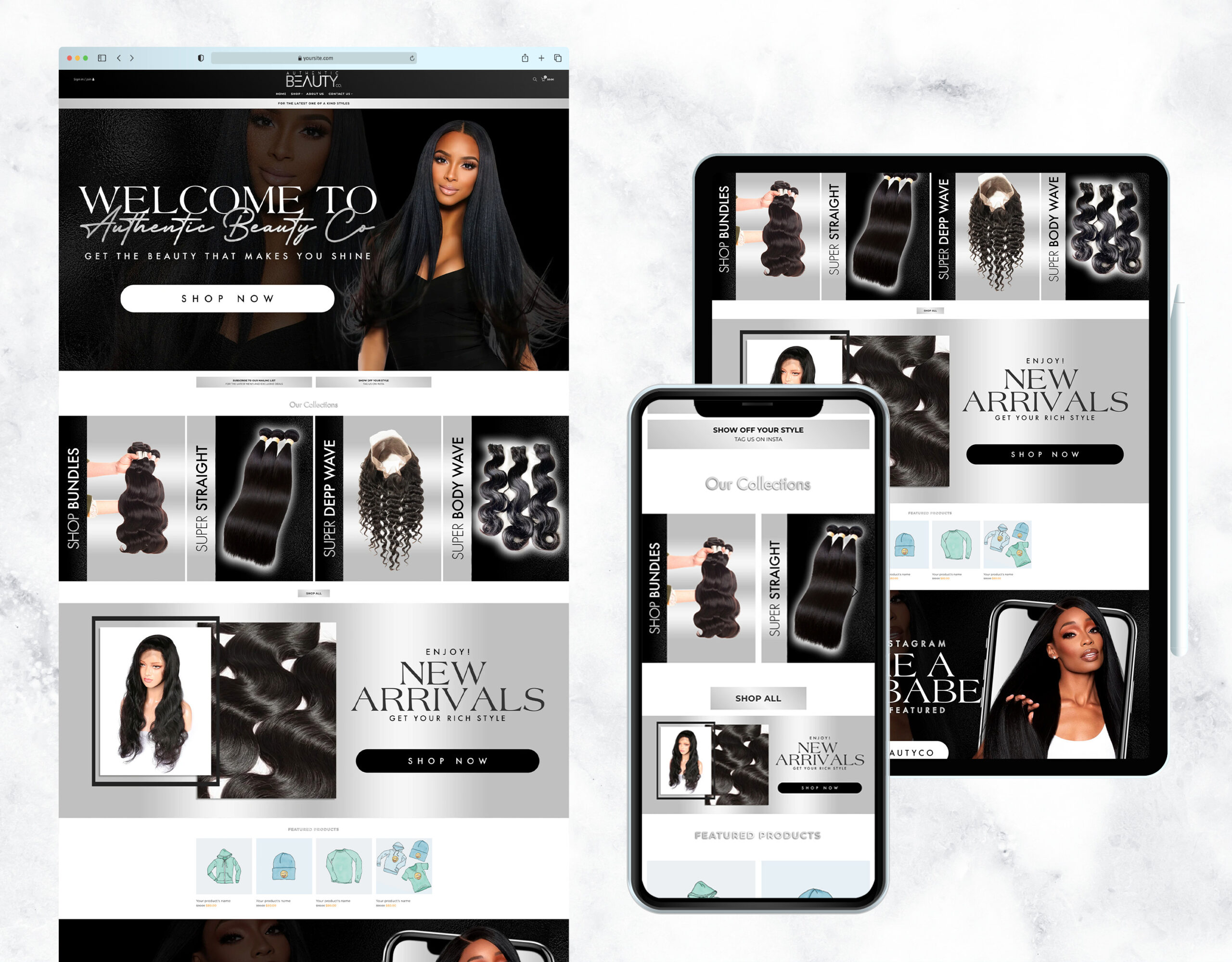 Luxurious Silver & Black Website Template for Hair Boutiques
