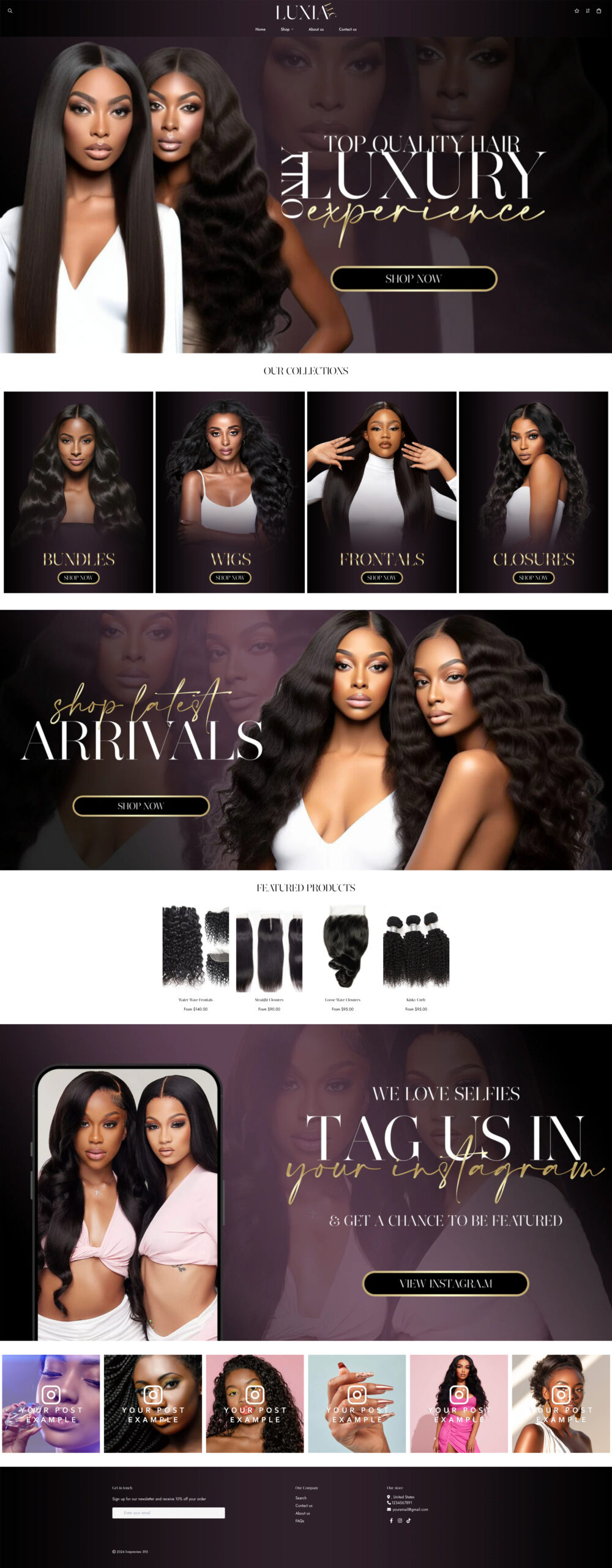 A luxury and elegant Shopify hair website design. This theme features a professional layout perfect for high-end hair brands and salons.