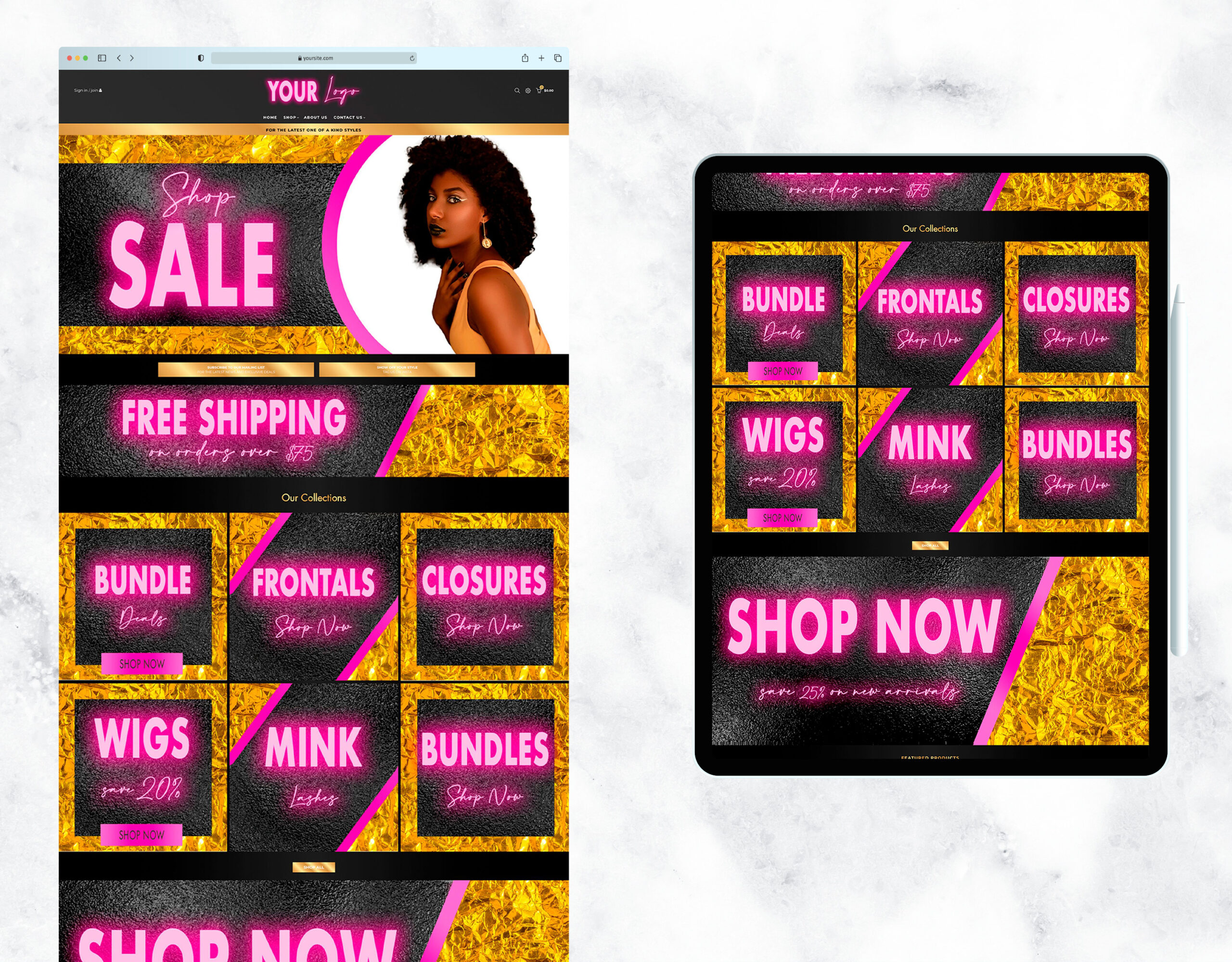Neon Pink & Gold Website Template for Hair & Beauty Boutiques