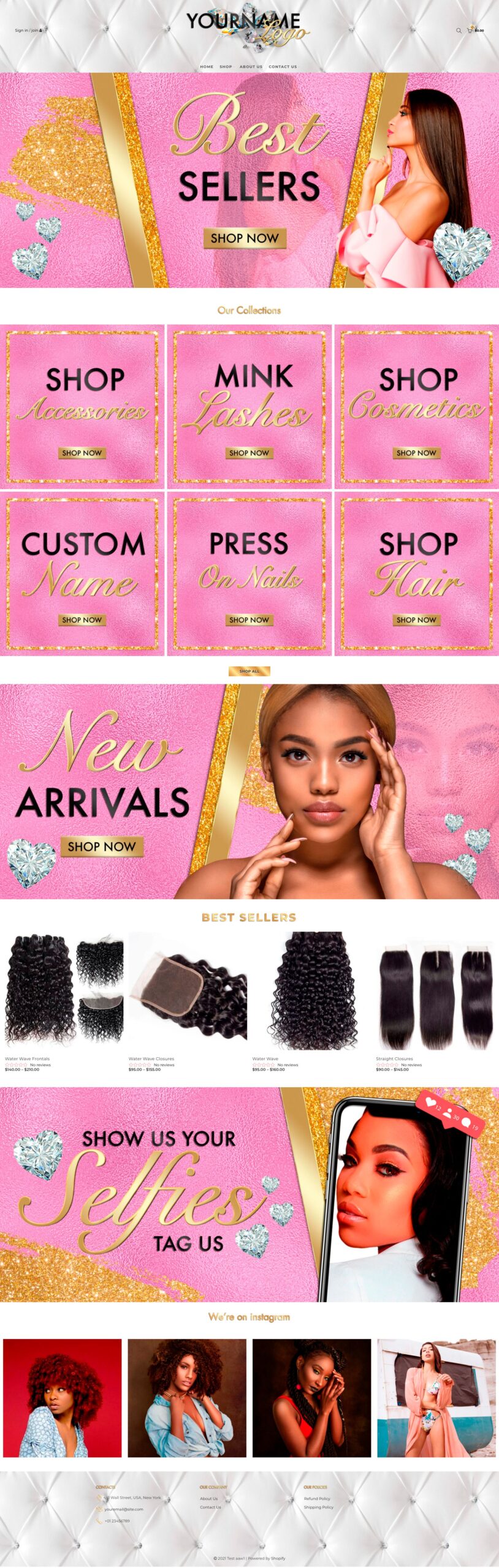 Launch your online store quickly with our professional website template. A versatile design perfect for clothing, hair, and accessory boutiques.