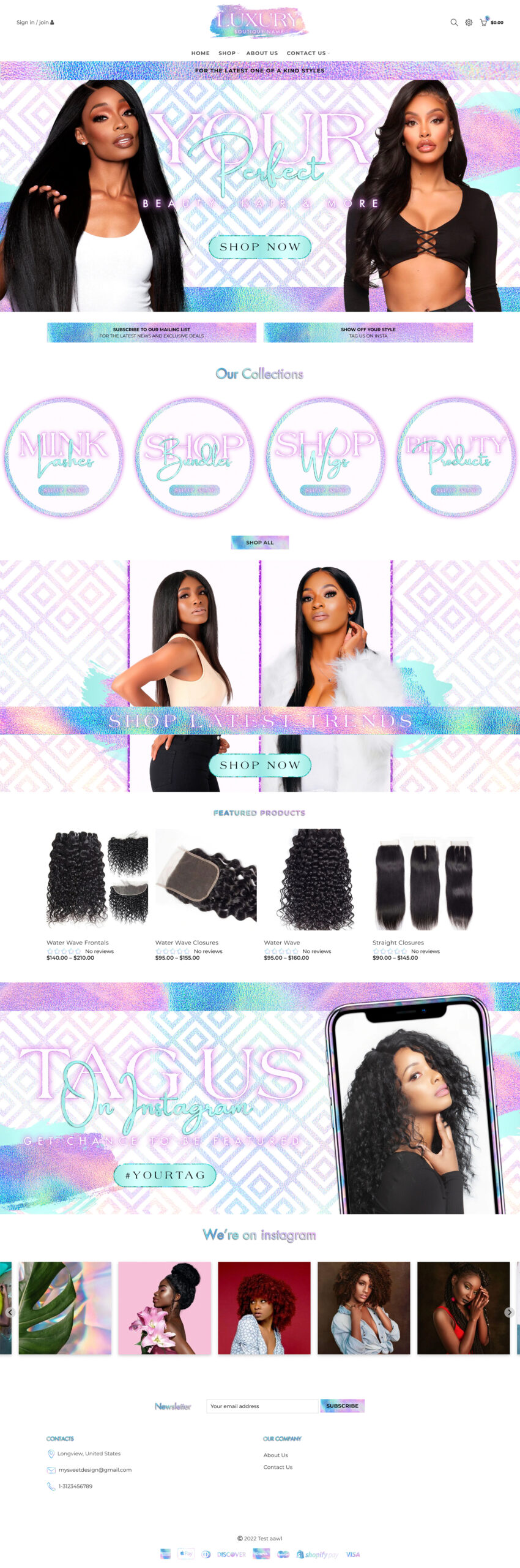 Get a unique, eye-catching look with our holographic website template. A customizable design for hair boutiques and other creative businesses.